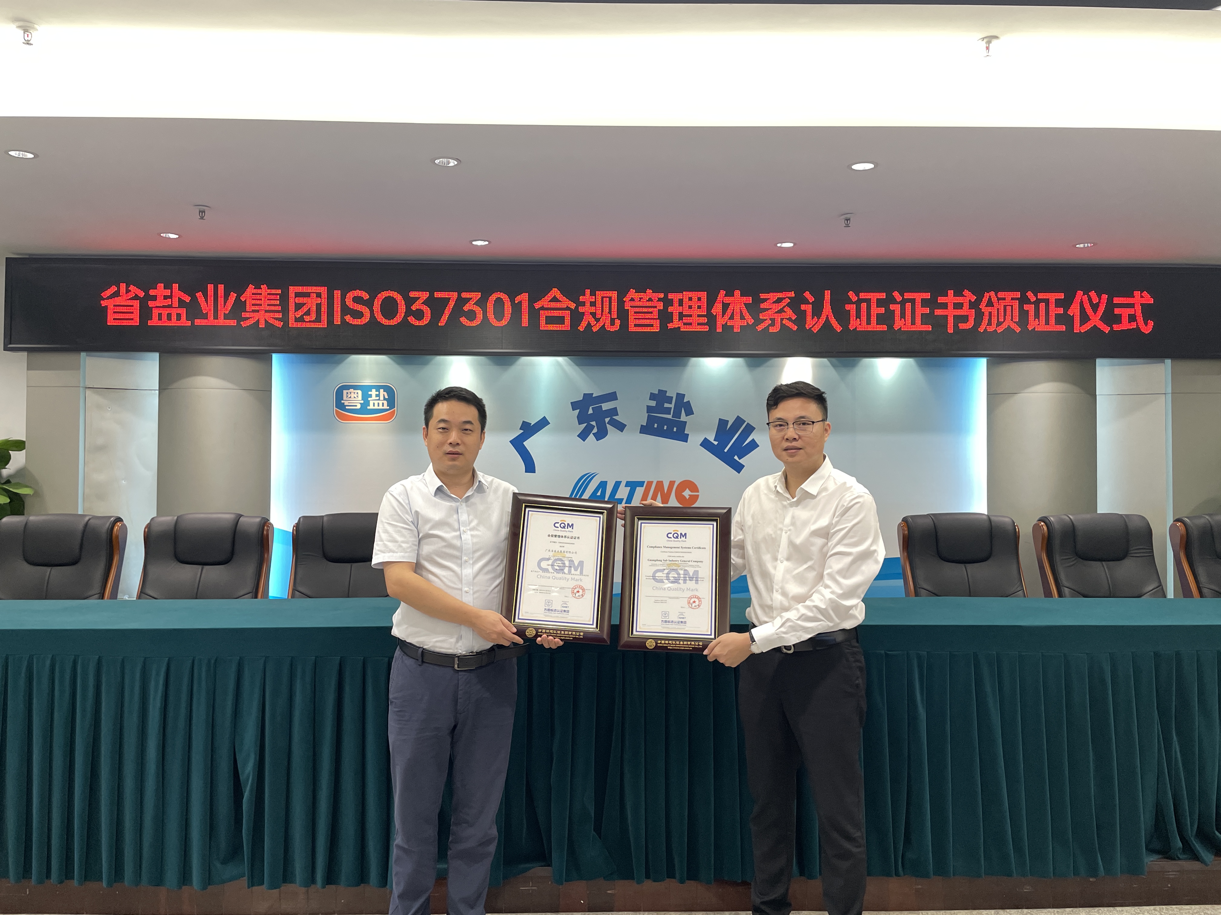 CQM方圓廣東向聯(lián)合電服頒發(fā)合規(guī)管理體系認證證書